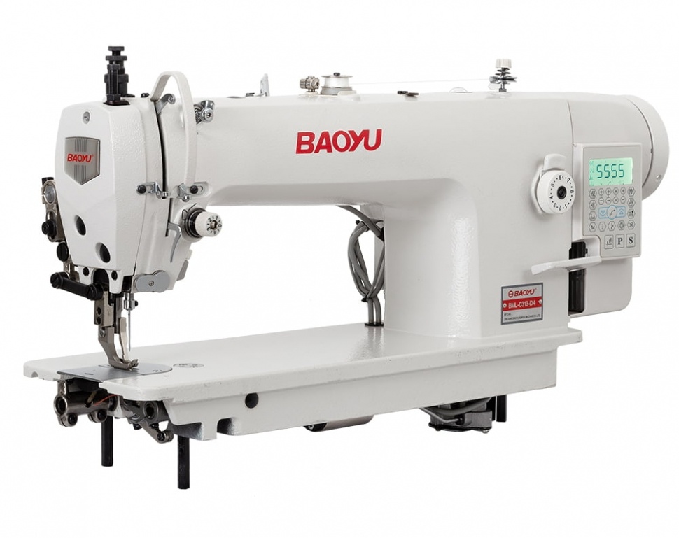 Baoyu BML-0313-D4 — компьютеризированная промышленная швейная машина с увеличенным челноком, удлинённым вылетом рукава и двойным механизмом продвижения материала. При таком способе продвижения материал перемещается за счёт нижней рейки и шагающей лапки, то есть за счёт двух движущих механизмов. Таким образом обеспечивается необходимое сцепление. Размер челнока увеличен на 30%, что даёт возможность использовать более вместительные шпульные колпачки и работать с толстой нитью. Вылет рукава в данной модели увеличен до 330 мм, специально для работы с крупногабаритным кроем. Baoyu BML-0313-D4 идеально подходит для пошива изделий из кожи и сверхтяжёлых материалов: мягкой мебели, туристического снаряжения, тентов, автомобильных чехлов.
