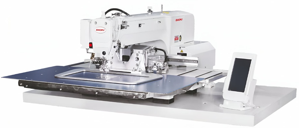 Baoyu BML-3020G-01A/CH оснащена пневматическим шаблоном с отводной прижимной лапкой, которая надёжно фиксирует деталь на всём протяжении цикла шитья, не давая ей смещаться. По завершении операции лапка автоматически отводится в сторону, что упрощает и ускоряет процесс обслуживания и подготовки изделий. Оператор только устанавливает деталь в шаблон, а машина самостоятельно выполняет шитьё, благодаря чему существенно экономится время по сравнению с традиционными системами. В базовом комплекте предоставляется универсальный прижимной шаблон, подходящий для большинства задач.