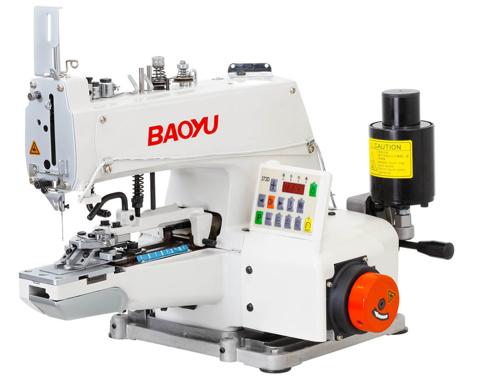 Baoyu BML-373D — высокоскоростная компьютеризированная пуговичная швейная машина цепного стежка с совершенно новой технологией выполнения заключительного стежка, которая существенно снижает вероятность распускания шва. Данная модель предназначена для пришивания плоских пуговиц с двумя и четырьмя отверстиями. Выбор типа пуговицы и расстояния между отверстиями удобно устанавливается с помощью соответствующего регулятора, размещённого в задней части машины. Каждая пуговица может пришиваться сериями по 8, 16 или 32 стежка. Для пришивания этикеток, декоративных пуговиц и пуговиц на ножке достаточно установить дополнительный переналадочный комплект.